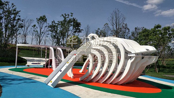 華東游樂貴州貴陽龍里案例是一個(gè)以鯨魚為主題的綜合性項(xiàng)目,內(nèi)置了腳踏噴泉,不銹鋼滑梯、秋千、鉆洞等游樂設(shè)備。