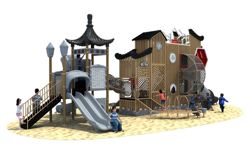 中國風系列是一種具有中國風建筑特色的大型滑梯組合,以蘇州園林與徽派建筑為靈感,將涼亭、房屋、大紅燈籠融入現(xiàn)代游樂設(shè)備,體現(xiàn)建筑美學(xué)的簡潔、復(fù)古、大方,為孩子打造一個奇妙的游樂世界,積極培養(yǎng)孩子對中國傳統(tǒng)文化的熱愛,弘揚中國傳統(tǒng)與親身體驗。