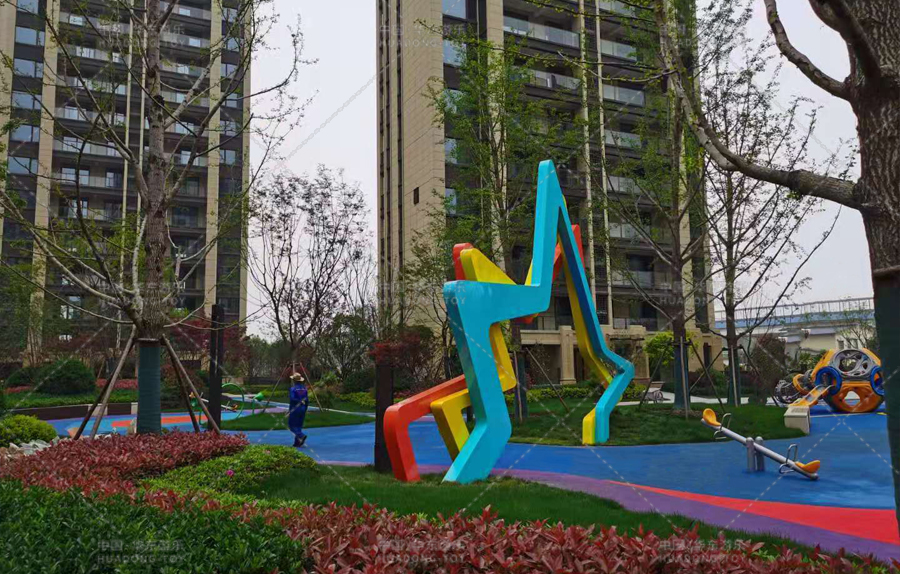 祥生云山新語(yǔ)項(xiàng)目采用的是以星星形狀的門(mén)型為原型而設(shè)計(jì)的游樂(lè)場(chǎng)地,該場(chǎng)地放置了蹺蹺板、微地形,攀爬墻等游樂(lè)設(shè)備。