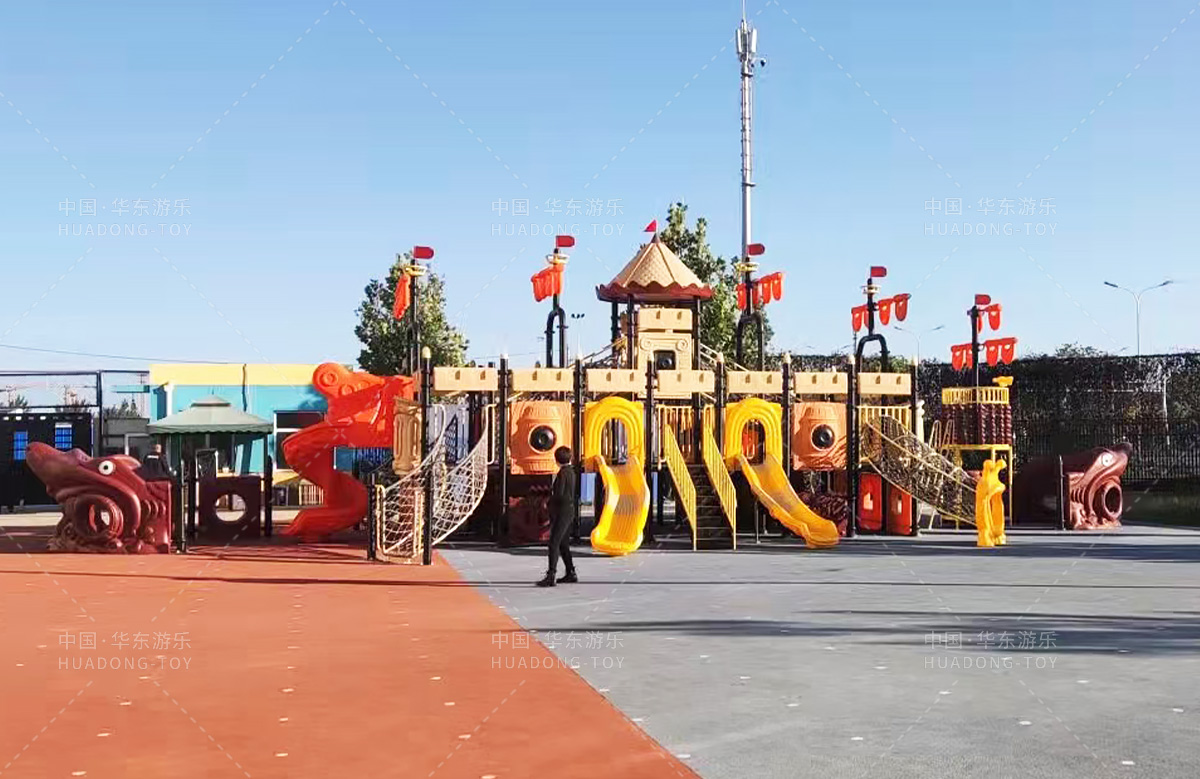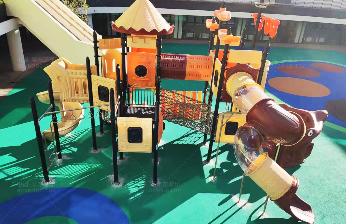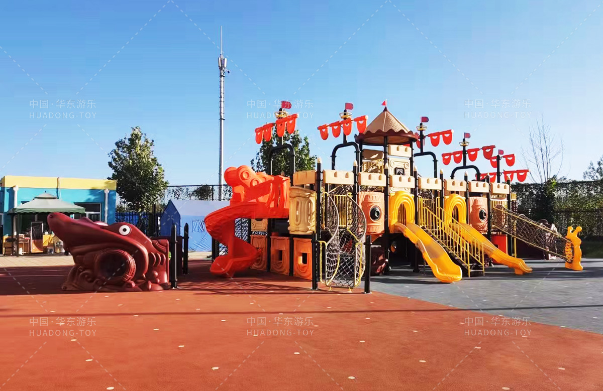 北京市朝陽區(qū)朝花幼兒園選用的是華東游樂自主研發(fā)的海盜船系列組合滑梯,該套設(shè)備設(shè)置了大型S型滑梯、攀爬網(wǎng)、鉆洞、網(wǎng)橋、攀巖等功能,為老師的教學(xué)提供了方便,同時也為校園提供了生機(jī)與活力。