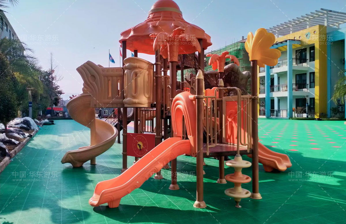 江西省上饒市臨湖中心幼兒園是一個(gè)專業(yè)的學(xué)前幼兒教育學(xué)校,此次選用的是華東游樂自主研發(fā)和設(shè)計(jì)的具有滑梯、鉆洞、攀爬等功能為一體的遠(yuǎn)古部落系列的組合滑梯,該滑梯具有功能齊全、顏色艷麗、主題性強(qiáng)、使用壽命長(zhǎng)等特點(diǎn),深受小朋友們的喜愛。