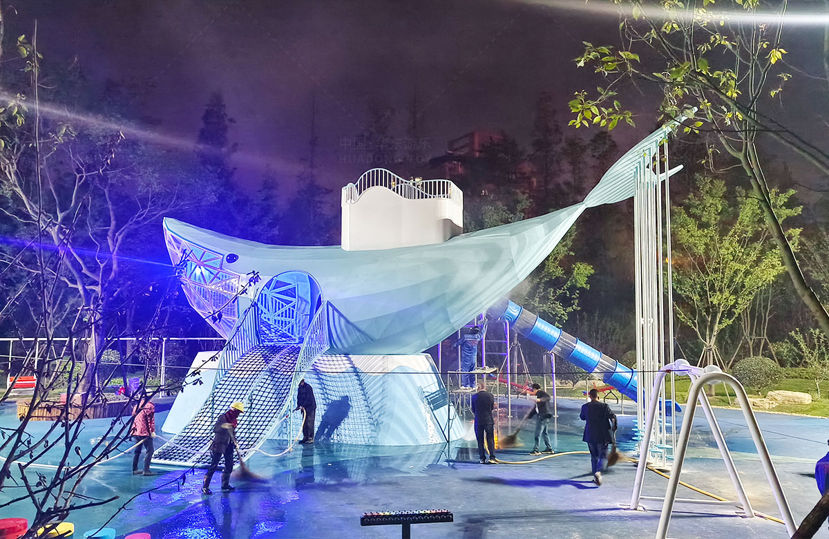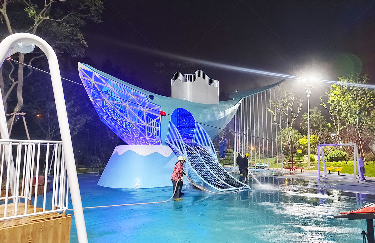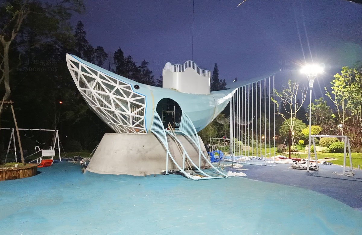 該項目選用的是華東游樂自主研發(fā)和生產(chǎn)的鯨魚主題系列的非標(biāo)定制游樂設(shè)備,設(shè)計了具有攀爬網(wǎng)、鉆洞、空中滑索、打擊樂器、旋轉(zhuǎn)椅等功能設(shè)備,卡通的造型,完善的功能深受小朋友們的喜愛。