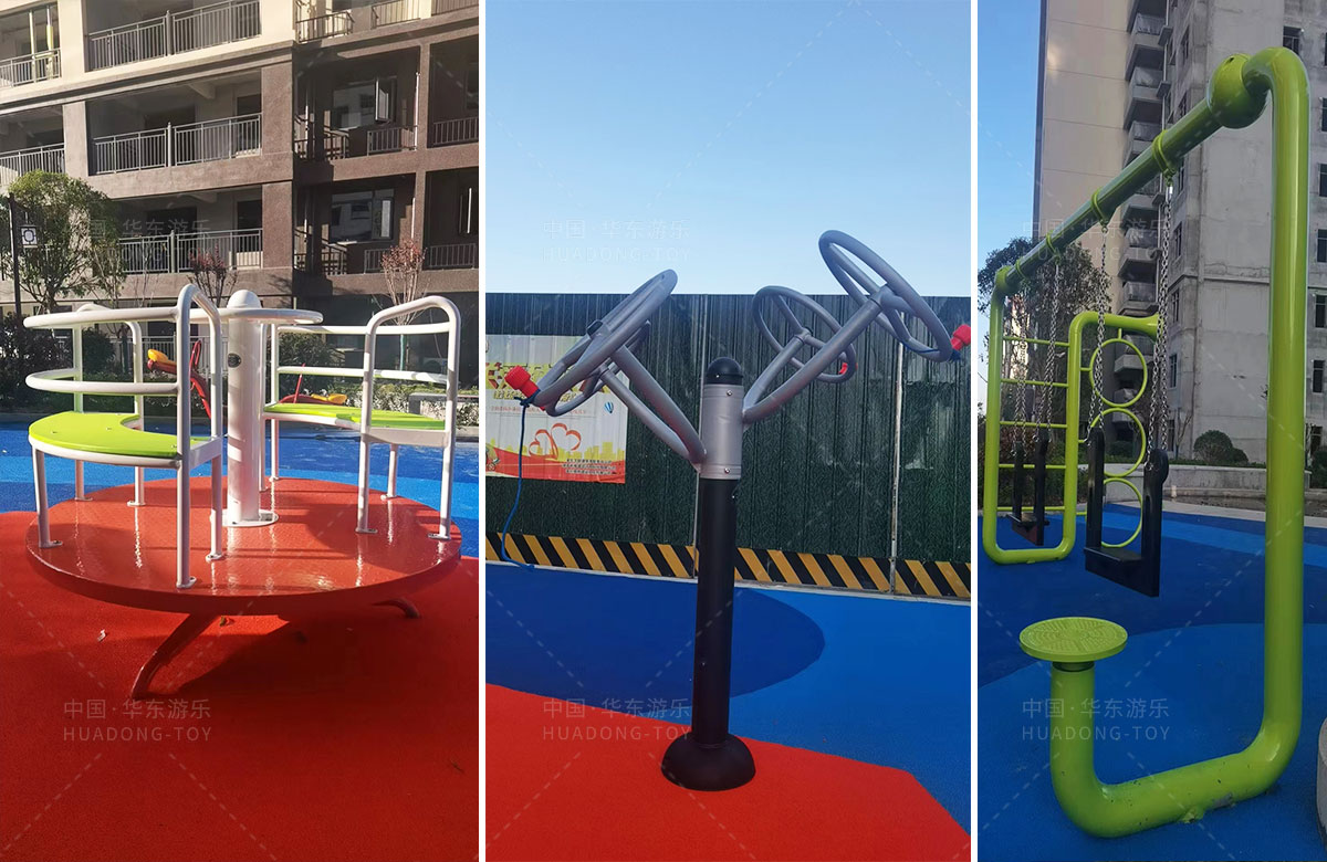 湖北黃岡市浠水縣星河薈小區(qū)選用的是華東游樂(lè)自主研發(fā)和設(shè)計(jì)的魔法屋系列組合滑梯,同時(shí)為了更好的滿足全齡人群的健身和需求還配備了漫步機(jī)、太極手推器、吊環(huán)等戶外健身器,不僅僅滿足了孩子們的游玩需求,也為當(dāng)?shù)氐娜颂峁┝艘幌滦菹?、娛?lè)、健身、遛娃的場(chǎng)所。