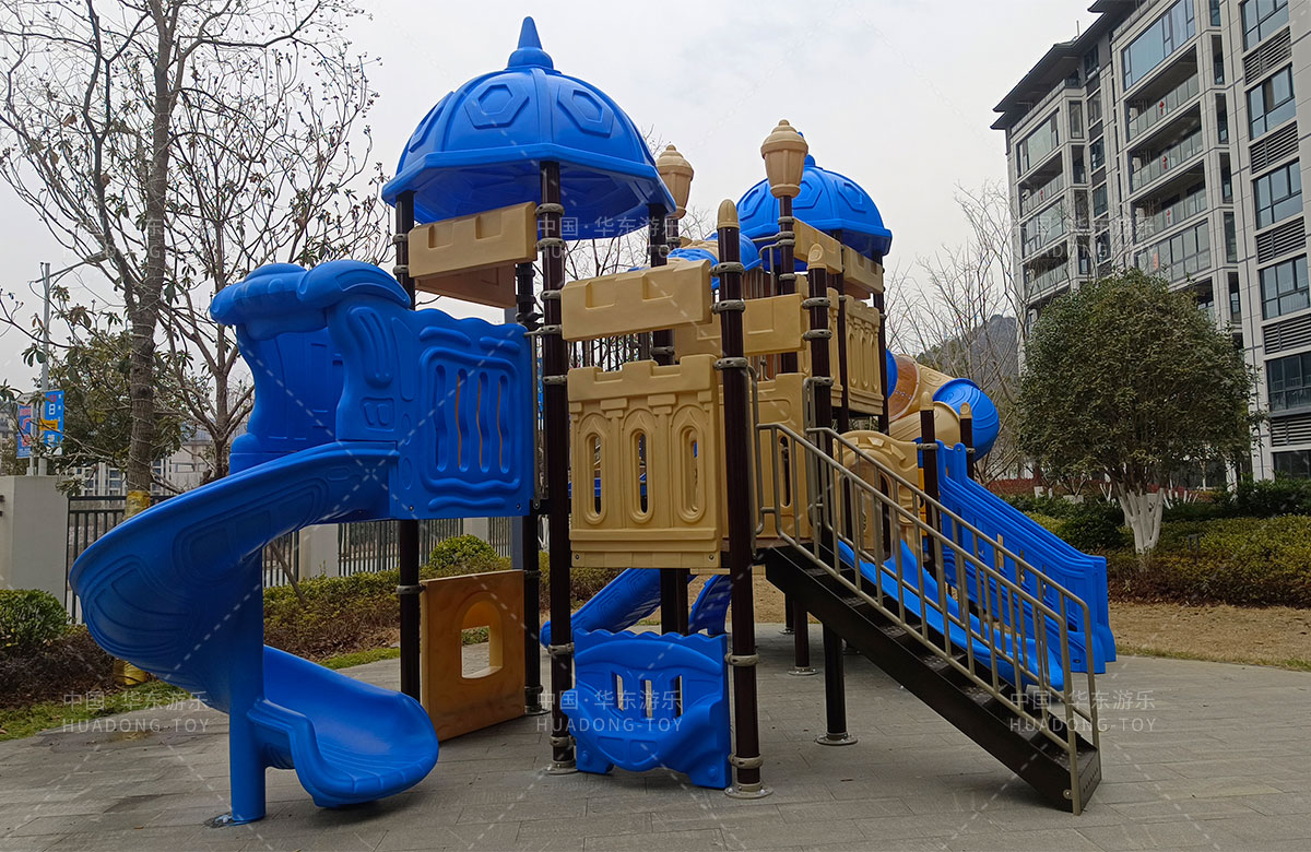 該小區(qū)選用的是華東游樂(lè)自主研發(fā)和設(shè)計(jì)的別墅屋系列組合滑梯,該滑梯具有顏色艷麗、使用壽命長(zhǎng)、功能齊全等特點(diǎn),深受孩子們和客戶的喜愛(ài)。