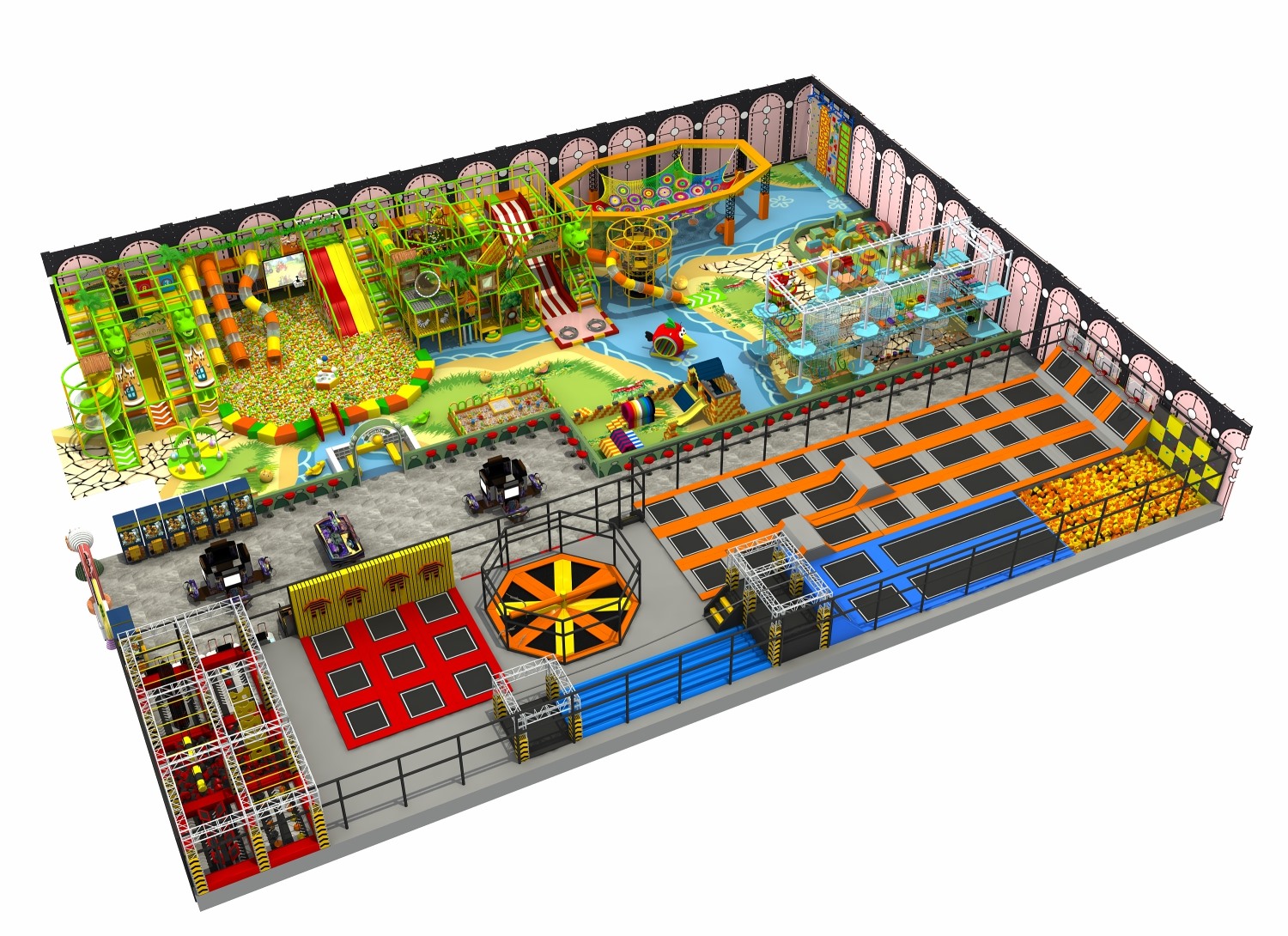 室內(nèi)淘氣堡又稱室內(nèi)兒童樂(lè)園,是針對(duì)兒童生理能力與心理特點(diǎn)喜歡鉆、爬、滑、滾、晃、蕩、跳、搖等玩耍動(dòng)作而設(shè)計(jì)的綜合性室內(nèi)休閑娛樂(lè)場(chǎng)所。華東游樂(lè)淘氣堡項(xiàng)目具有多樣性、互動(dòng)性和安全性的特點(diǎn),兒童在玩樂(lè)的同時(shí)能培養(yǎng)獨(dú)立的個(gè)性,團(tuán)隊(duì)協(xié)作能力,溝通能力、克服困難、積極進(jìn)取的精神,鍛煉身體、健腦益智。