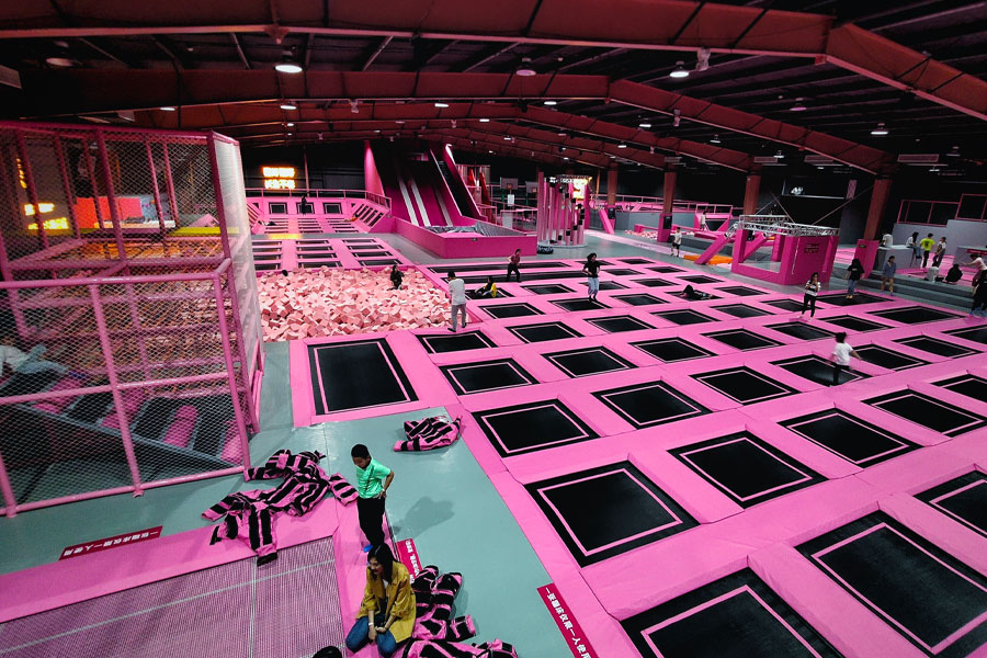 除了蹦床設備外,還需要建設一些配套設施,如更衣室、儲物柜、衛(wèi)生間等,以滿足游客的基本需求。同時,可以考慮添加一些娛樂設施,如電玩、抓娃娃機等,增加游客的游玩樂趣。