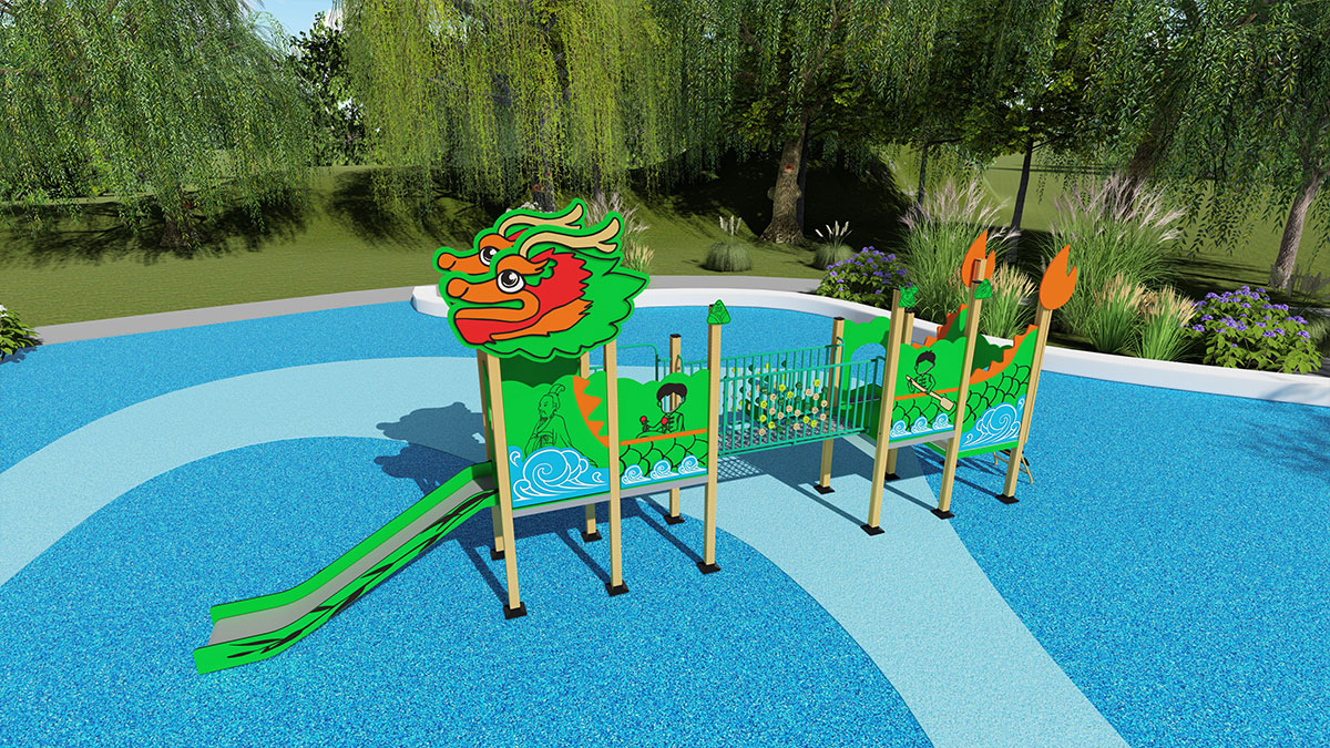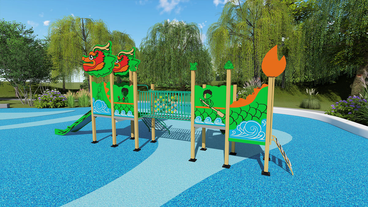 新品說(shuō)明:“龍舟樂(lè)園”是一款集趣味性與教育性于一體的兒童游樂(lè)設(shè)施。它巧妙地將龍舟文化融入設(shè)計(jì)中,不僅提供了攀爬網(wǎng)、滑梯、攀爬梯等經(jīng)典游樂(lè)元素,還創(chuàng)新地加入了翻翻樂(lè)和角色扮演功能。孩子們?cè)谕嫠5耐瑫r(shí),可以體驗(yàn)龍舟競(jìng)渡的激情 ,感受中國(guó)傳統(tǒng)文化的魅力。