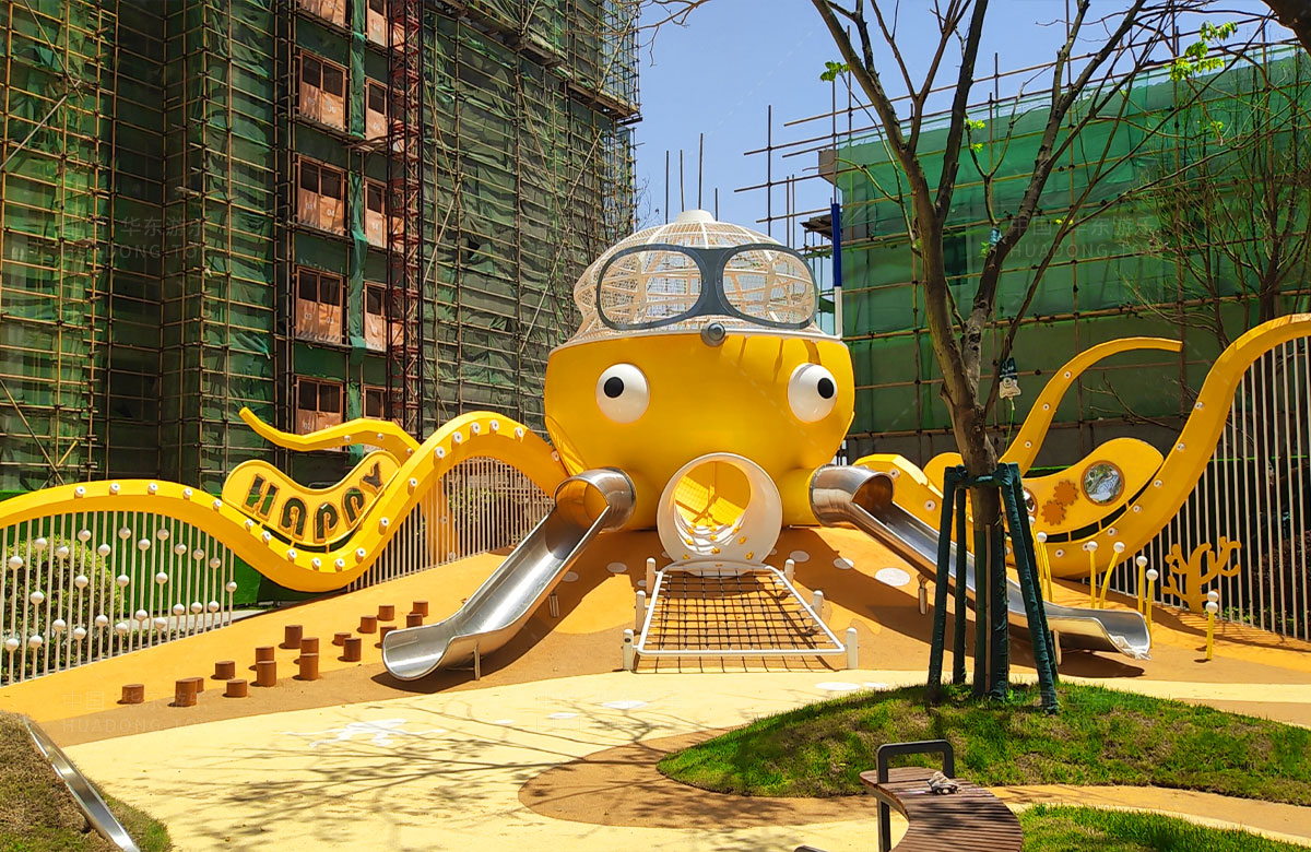 襄陽金輝優(yōu)步學(xué)府此次選用的是華東游樂自主研發(fā)和設(shè)計的以章魚為主題的的游樂設(shè)備,該設(shè)備以生動的形象向小朋友展示了游樂設(shè)備的多姿多彩,結(jié)合各種的攀爬網(wǎng)、攀爬梯、不銹鋼滑梯、攀爬桿、不銹鋼鉆洞、組合秋千,不僅僅豐富了小區(qū)的生活,同時也為生活在當(dāng)?shù)氐娜巳禾峁┝艘粋€休閑、娛樂、遛娃的場所。