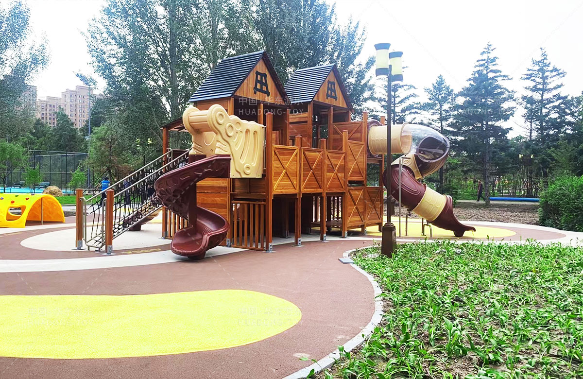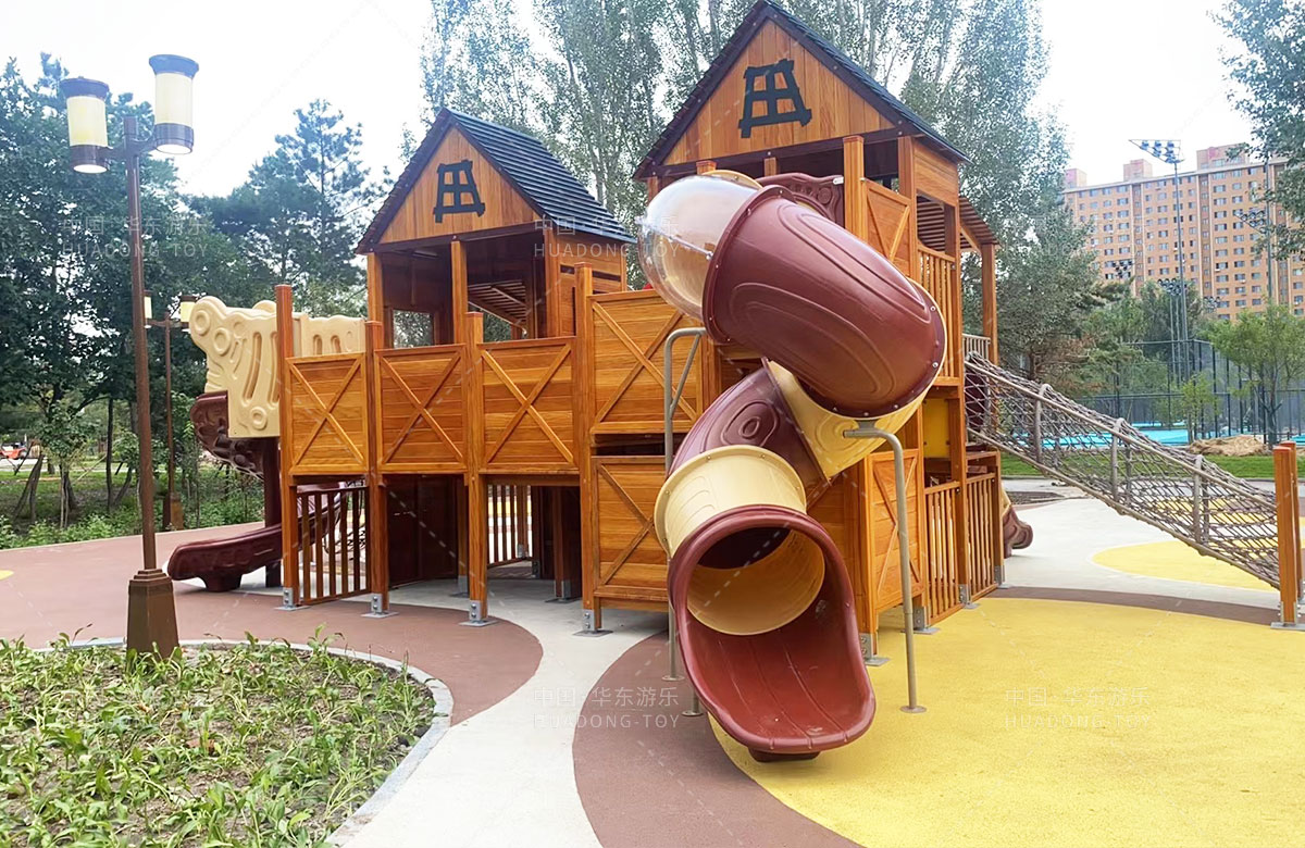 吉林省白城市洮北區(qū)兵器城小區(qū)是一個(gè)綜合類型的居民小區(qū),該小區(qū)設(shè)置了各種類型的 游樂設(shè)施,為了更好的為人民提供一個(gè)休閑娛樂的場所,此次選用的是華東游樂自主研發(fā)和設(shè)計(jì)的木質(zhì)小屋系列的組合滑梯,除此之外還設(shè)置了孩子們喜歡的各種攀爬游樂設(shè)備。