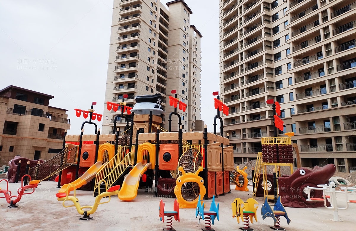 該項目選用的是華東游樂自主研發(fā)和設(shè)計的以海盜系列為主題設(shè)計的海盜船系列組合滑梯,該滑梯具備功能齊全、顏色艷麗、使用壽命長、安全環(huán)保等特點,是一款非常受小朋友歡迎的組合滑梯,除此之外還設(shè)置了小朋友喜歡的兒童搖搖樂、秋千等游樂設(shè)備,同時還專門設(shè)計了健身區(qū),為生活在當(dāng)?shù)氐娜巳禾峁┝艘粋€休息、娛樂、遛娃的場所。