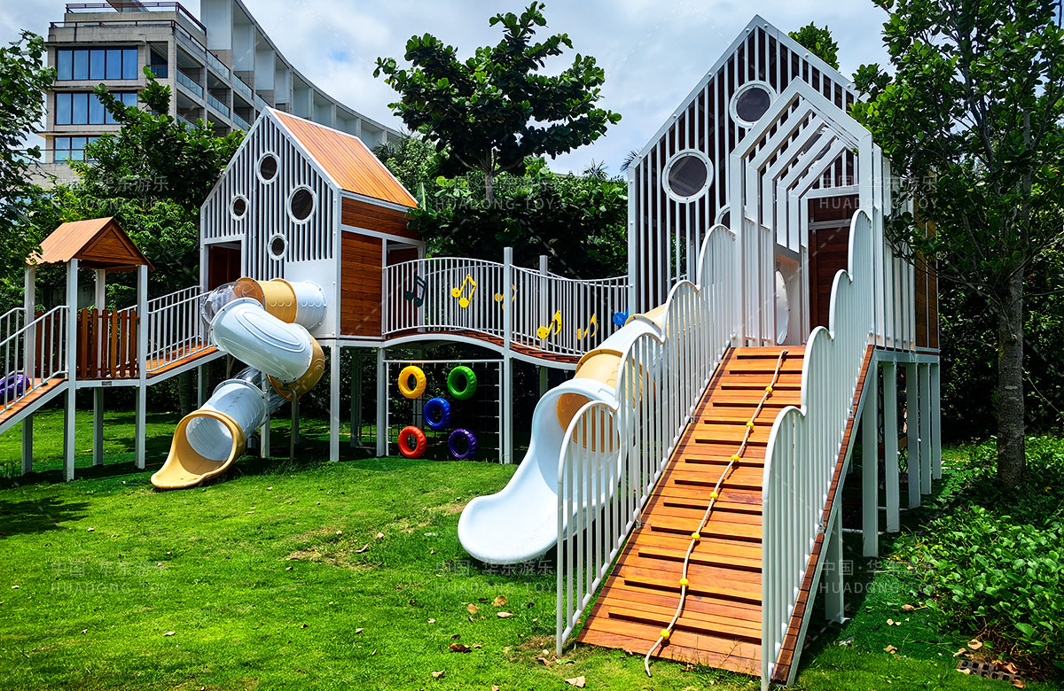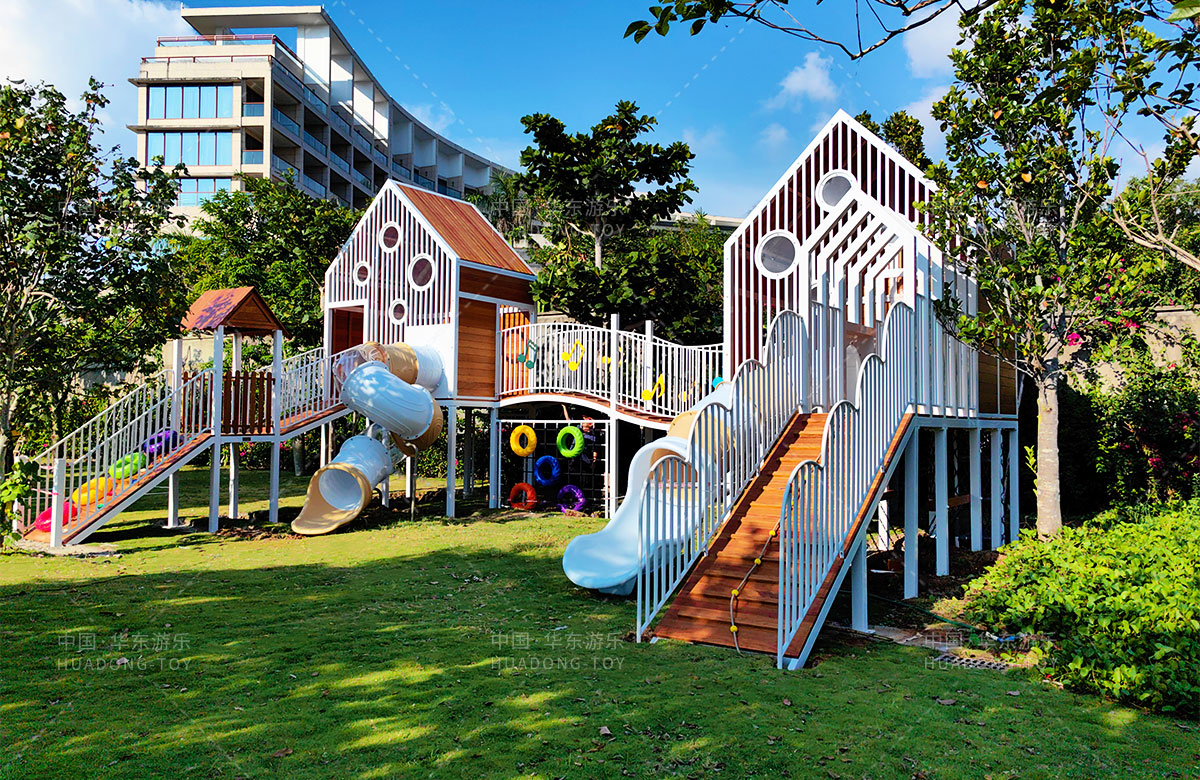 三亞天涯藍(lán)海度假酒店是一個高端的休閑、旅游度假酒店,為了更好的為各位客戶提供更加高端和更加完美的旅行服務(wù),該酒店選用了華東游樂自主研發(fā)和設(shè)計(jì)的非標(biāo)定制的多功能組合游樂設(shè)備,該設(shè)備具備了攀爬繩、攀爬網(wǎng)、旋轉(zhuǎn)滑梯、游戲小屋等系列功能。