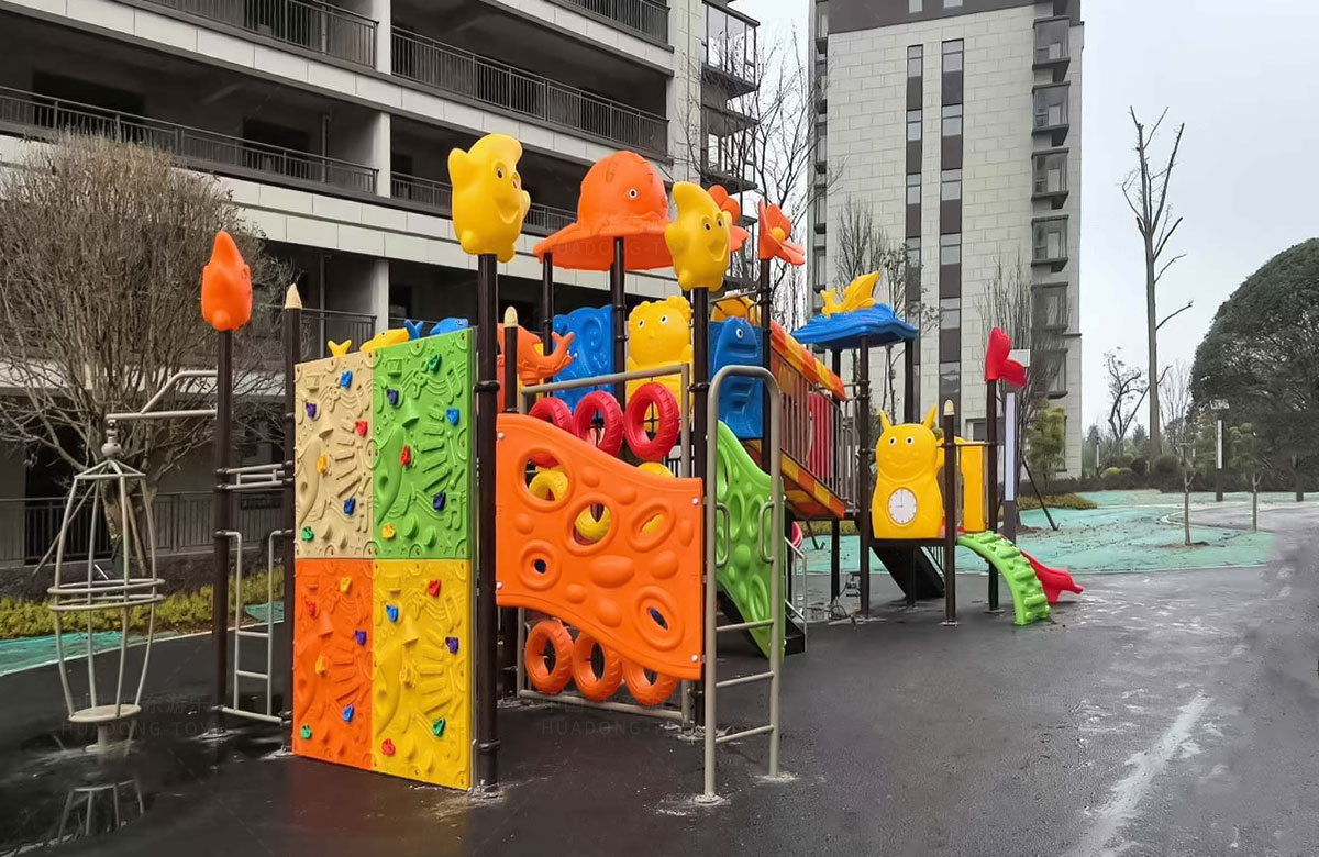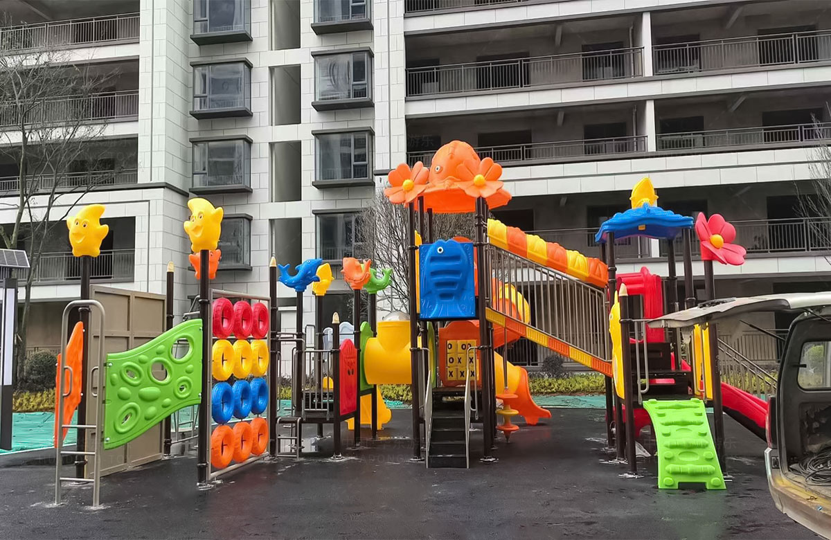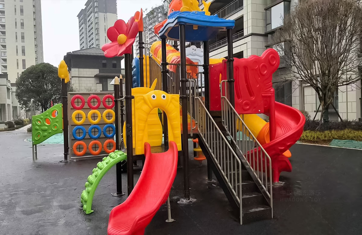 云南曲靖羅平縣花海國際小區(qū)選用的是華東游樂自主研發(fā)和設計的動物系列組合滑梯,該滑梯具有功能齊全、玩法多樣,深受孩子們的喜愛,除此之外還是一款顏色艷麗、使用壽命長等特點。