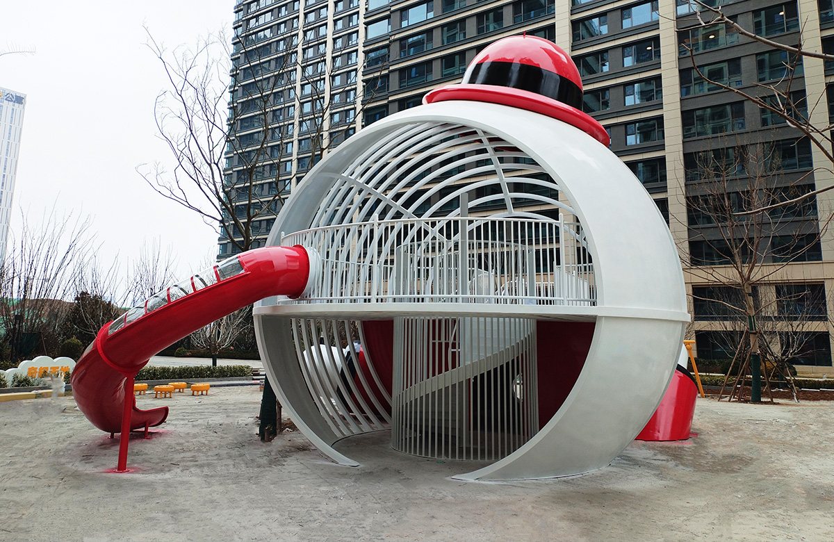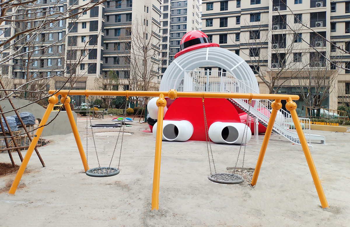 山東省銀豐玖璽城崇和院選用的是銀豐地產(chǎn)旗下的IP主題人物 銀小豐 為主題設(shè)計(jì)的主題性游樂設(shè)備,該設(shè)備具備了攀爬網(wǎng)、不銹鋼滑梯、鉆洞等功能,同時(shí)為了更好的為生活在小區(qū)的人們提供方便和服務(wù),我們還設(shè)置了組合秋千、蹺蹺板、搖搖樂地蹦床等游樂設(shè)備,讓整個(gè)小區(qū)的生活變得更加的充滿生機(jī)與活力。