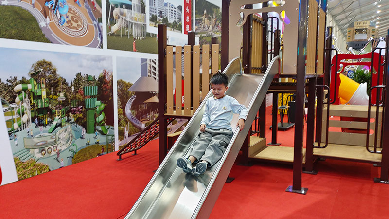 除了獨特的外觀設(shè)計,這款滑梯在安全性和趣味性方面也做到了極致?;莶捎昧烁咂焚|(zhì)的環(huán)保材料制作,表面光滑無毛刺,確保孩子們在玩耍過程中不會受到傷害。同時,滑梯的坡度經(jīng)過精心設(shè)計,既能夠保證孩子們滑行的速度和樂趣,又不會過于陡峭,避免發(fā)生意外。一位參觀展會的家長在體驗后稱贊道:“這個西游主題滑梯太有創(chuàng)意了,孩子們既能玩得開心,又能了解中國傳統(tǒng)文化,真是一舉兩得。”
