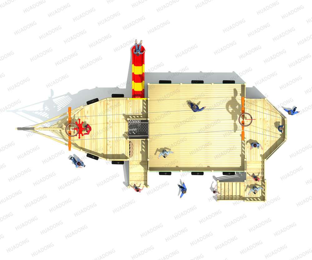 木質(zhì)海盜船組合滑梯的設(shè)計以大自然為主題,融合了船體、桅桿、甲板等元素,外觀新穎、結(jié)構(gòu)牢固。它集攀爬、滑梯、秋千等功能于一體,旨在鍛煉孩子的平衡協(xié)調(diào)能力和自我保護(hù)意識,同時培養(yǎng)探險精神。