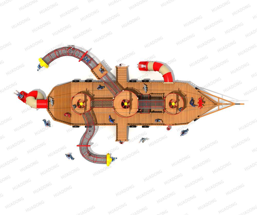 木質(zhì)海盜船組合滑梯的設(shè)計以大自然為主題,融合了船體、桅桿、甲板等元素,外觀新穎、結(jié)構(gòu)牢固。它集攀爬、滑梯、秋千等功能于一體,旨在鍛煉孩子的平衡協(xié)調(diào)能力和自我保護(hù)意識,同時培養(yǎng)探險精神。