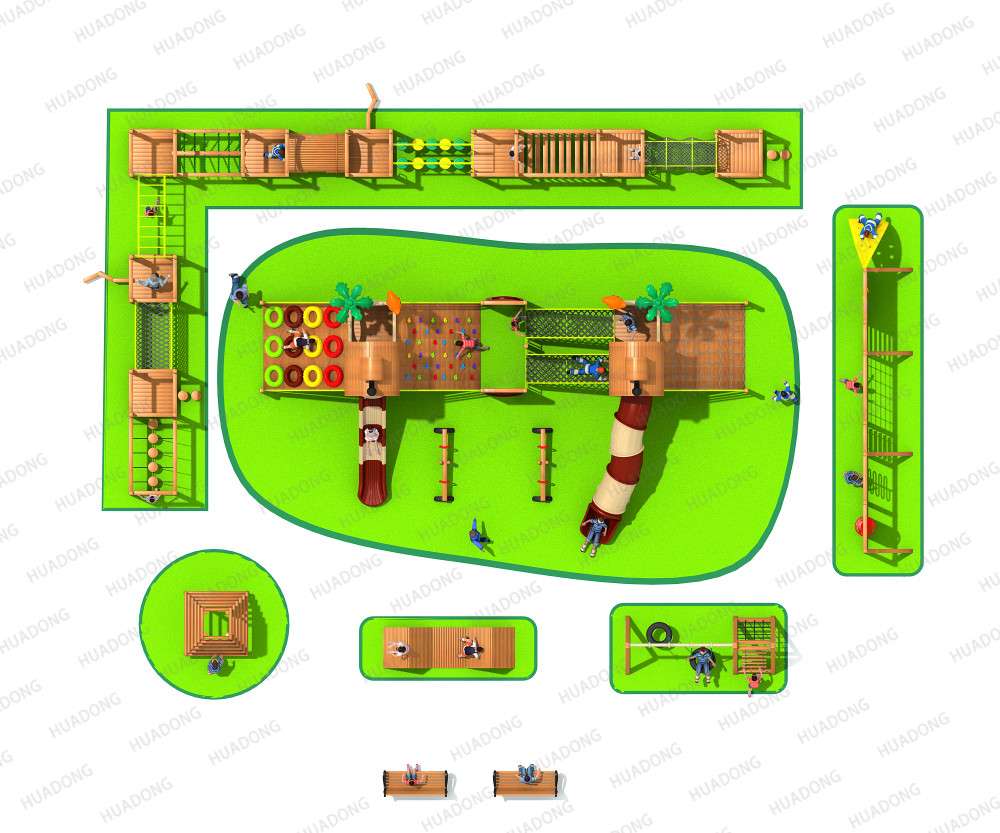 木質(zhì)拓展設(shè)施采用天然木材打造,設(shè)計注重安全與挑戰(zhàn)并重。通過懸掛橋、攀爬網(wǎng)、平衡木等多樣化的障礙元素,旨在提升參與者的體能、平衡感及團隊協(xié)作能力,同時享受親近自然、挑戰(zhàn)自我的樂趣。
