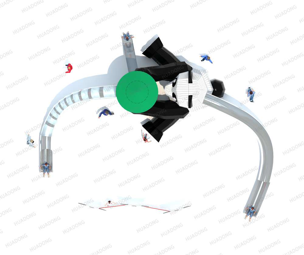 靈感來源于我國大熊貓,被譽(yù)為“中國國寶”,喜歡吃竹子。大大的黑眼圈,胖嘟嘟的身體。設(shè)計者利用這一形象,將可愛的大熊貓設(shè)計成雙手抱著竹子,再搭配黑白兩色,使形象變的活潑可愛。將熊貓的雙手設(shè)計成過道來增加玩具的功能。使熊貓不僅具有觀賞價值,還能讓孩子們玩的開心。讓孩子走進(jìn)大熊貓的世界,與大熊貓游玩吧!