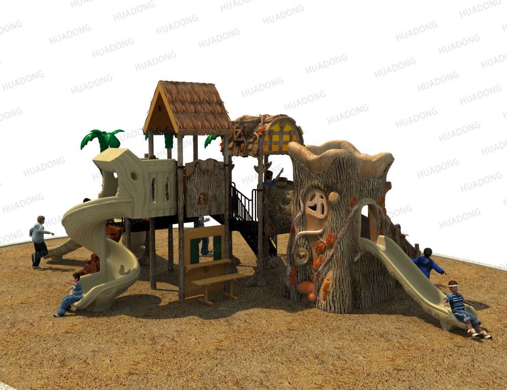 遠古部落系列雖然名字帶著“古”字,但是在設(shè)計細節(jié)處無不透露著藝術(shù)與創(chuàng)造性。當(dāng)孩子在仿真樹中探索、冒險、嬉戲游玩時,就像穿越到古老的神秘森林;粗略的樹干包圍著他們,頭頂是高聳的茅草屋,觸感真實的枯枝走廊,還有隨處可見的小動物們…… 遠古部落系列旨在打造區(qū)別于其他系列帶給孩子們的新鮮感,讓孩子們找設(shè)計者打造的神秘世界中獲得冒險的樂趣。