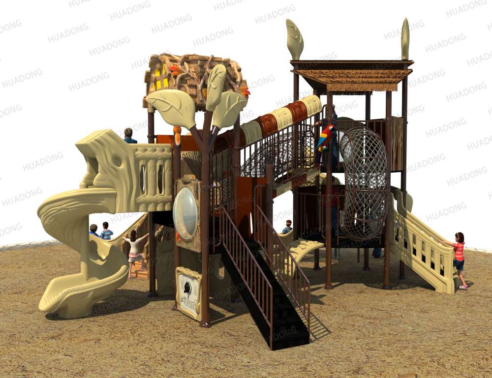 遠(yuǎn)古部落系列雖然名字帶著“古”字,但是在設(shè)計(jì)細(xì)節(jié)處無不透露著藝術(shù)與創(chuàng)造性。當(dāng)孩子在仿真樹中探索、冒險(xiǎn)、嬉戲游玩時(shí),就像穿越到古老的神秘森林;粗略的樹干包圍著他們,頭頂是高聳的茅草屋,觸感真實(shí)的枯枝走廊,還有隨處可見的小動(dòng)物們…… 遠(yuǎn)古部落系列旨在打造區(qū)別于其他系列帶給孩子們的新鮮感,讓孩子們找設(shè)計(jì)者打造的神秘世界中獲得冒險(xiǎn)的樂趣。